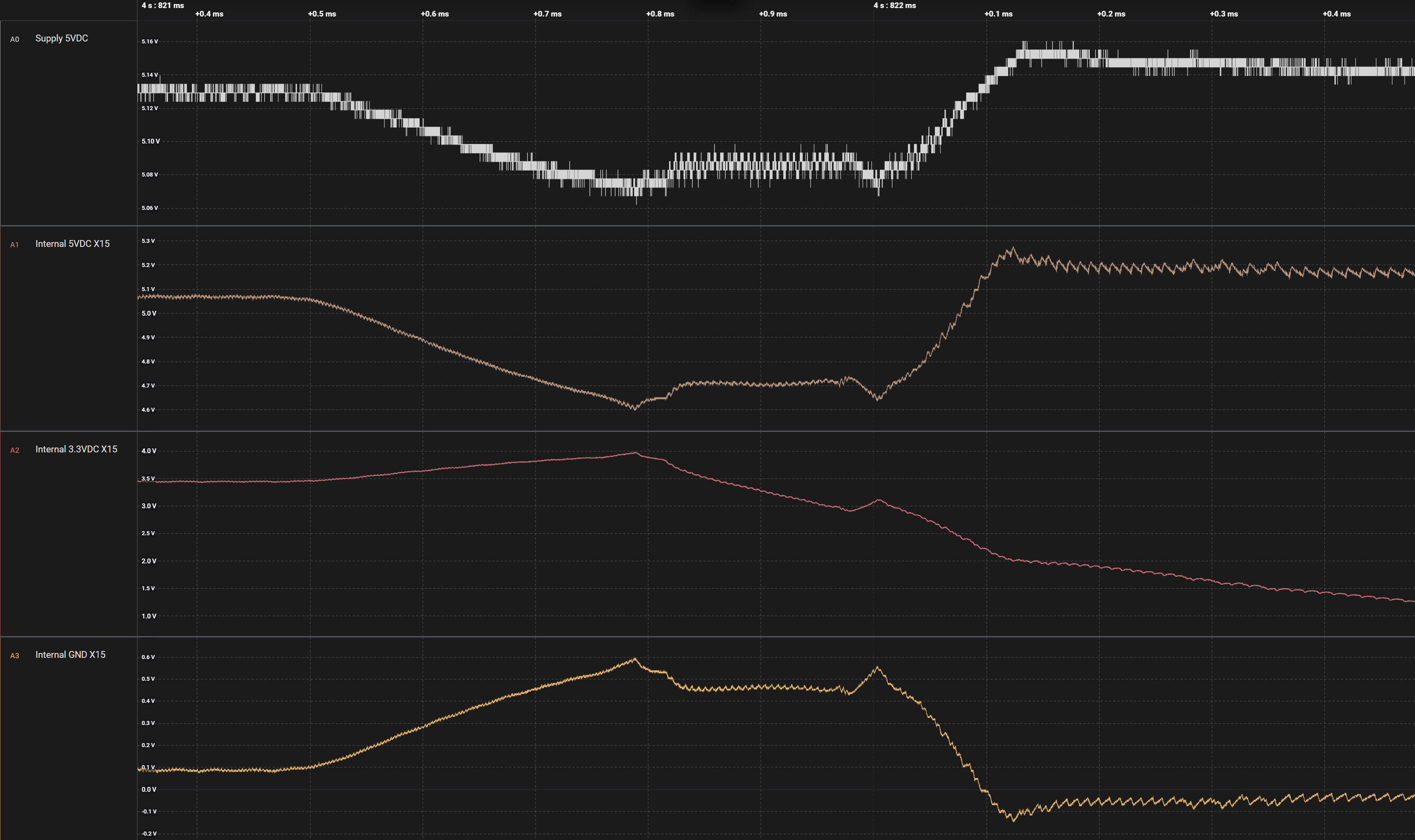 Here are the measurements with internal rails measured from X15. Internal GND is from X15 as well. Couldn’t find a 1V8 to be measured and the backlight supply seems to be PWR_IN_FILT, which is the same as the 5V at X15.