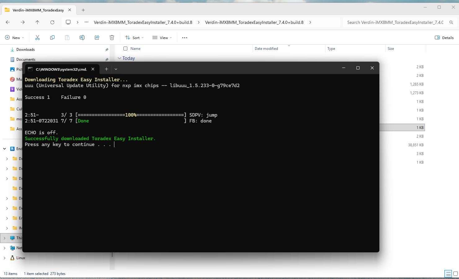 I have now flashed the latest Torizon OS 7.x image via Toradex Easy Installer (download & flash reported 100 % complete).
