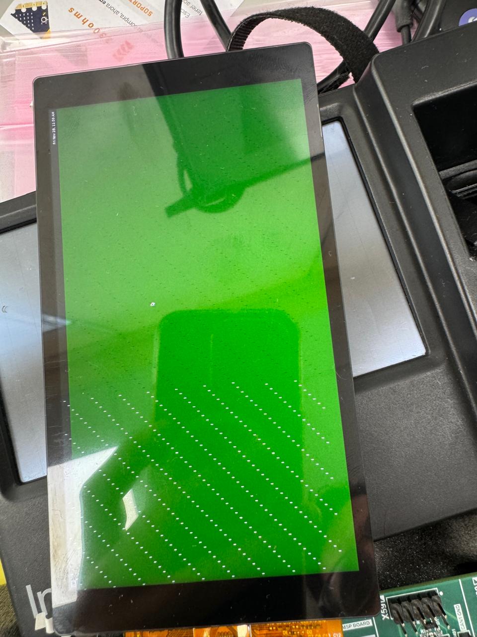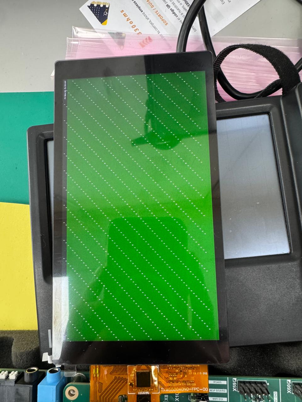 When we build the Torizon image and run the Weston container, diagonal bands/stripes appear on the screen once Weston starts. These distortions do not appear during the splash screen — the splash screen is shown correctly (solid blue). I attach screenshots where we set the Weston background to a green color to make the bands more visible, and a short video that shows the splash screen followed by Weston and our application starting.