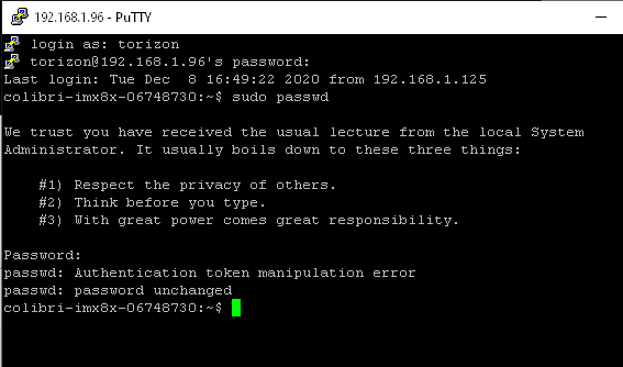 Changing password for torizon.