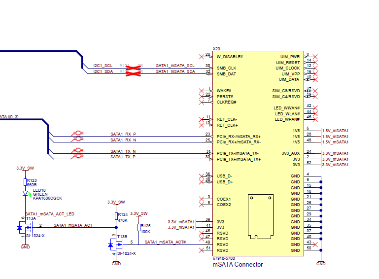 Also, LED10 is connected only to the mSATA connector and is not controlled by the SoM.