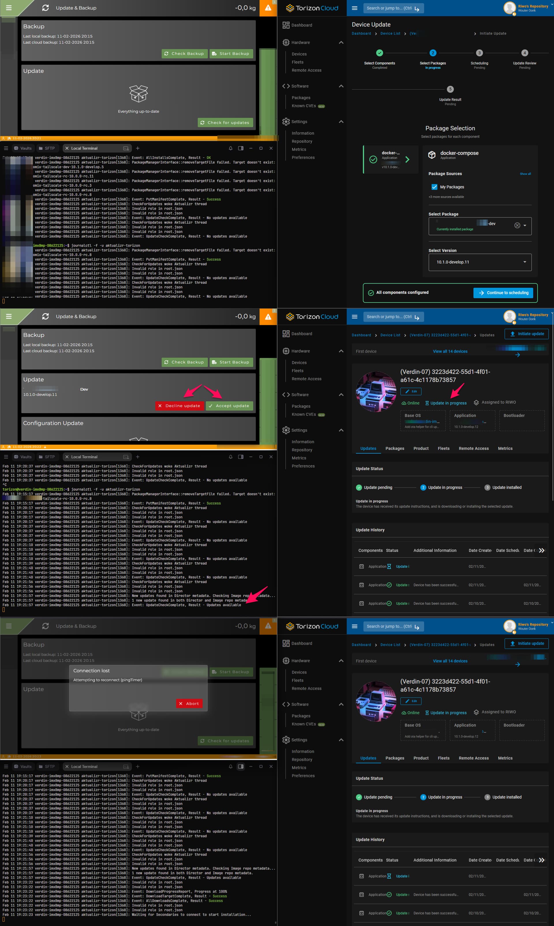 Even when we wait for user interaction on the device, the OTA backend already switches the device to “Update in Progress” as soon as the update is detected. At that moment: