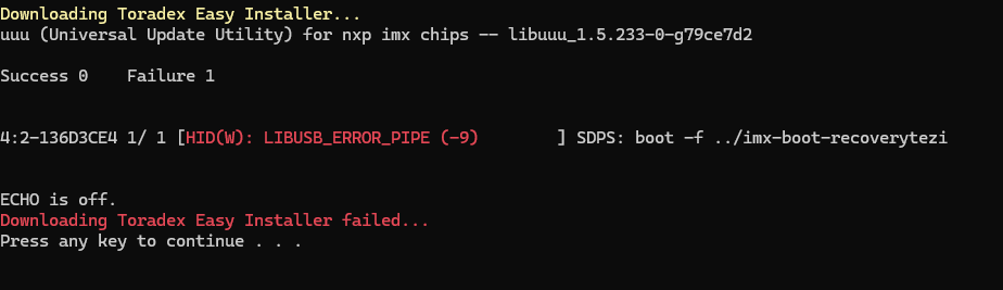SMARC iMX95 Recovery Issue - LIBUSB_ERROR_PIPE Solution
